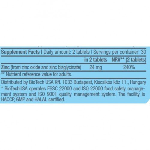 Продукт Zinc + Chelate подобно всем остальным продуктам от компании BioTechUSA содержит безопасные, тщательным образом подобранные ингредиенты.