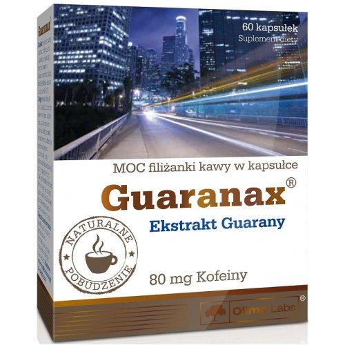 Guaranax от Olimp – это универсальный энергетик, содержащий кофеин, полученный из экстракта гуараны. Гуарана – растение, произрастающее в Бразилии и Уругвае, его плоды, напоминающие орех фундук, содержат до 6% кофеина. Кофеин является подходящим большинству людей эффективным стимулятором, который увеличивает концентрацию, внимание и инициативность – со стороны ЦНС, а также физическую активность и силовые показатели.