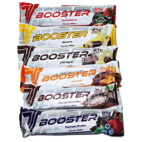 BOOSTER - это вкусный, углеводно-протеиновый батончик с превосходным вкусом, изготовленный на основе полноценного сывороточного белка и богатых естественными жирами арахисовых орехов и массы какао.