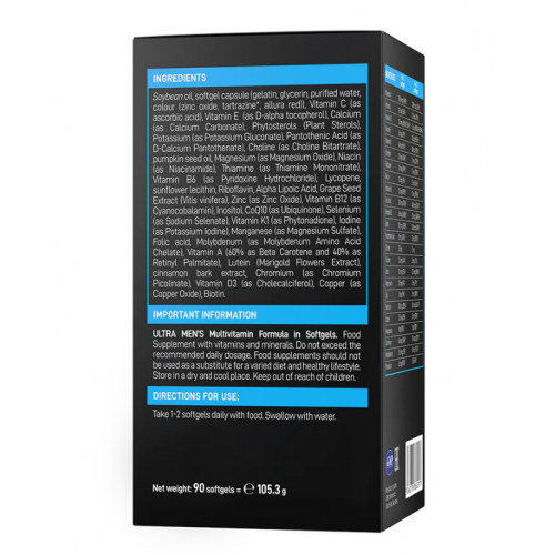 Мультивитамины Ultra Men в мягких капсулах поддерживают ежедневную энергию и жизненные силы, а также помогают уменьшить усталость и усталость. С этим продуктом у вас есть помощь, необходимая для поддержания памяти, умственных способностей, а также когнитивных и психологических функций именно там, где они должны быть.